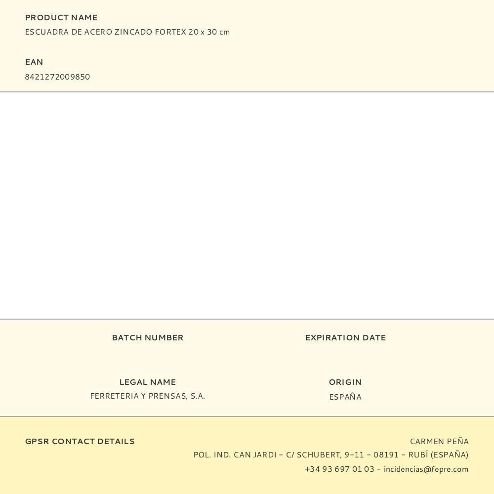 Escuadra De Acero Zincado Fortex 20 X 30 Cm