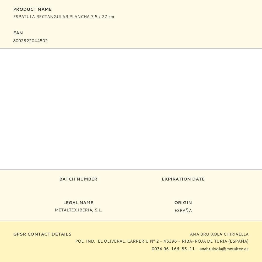 Espátula Rectangular Plancha 7,5 X 27 Cm