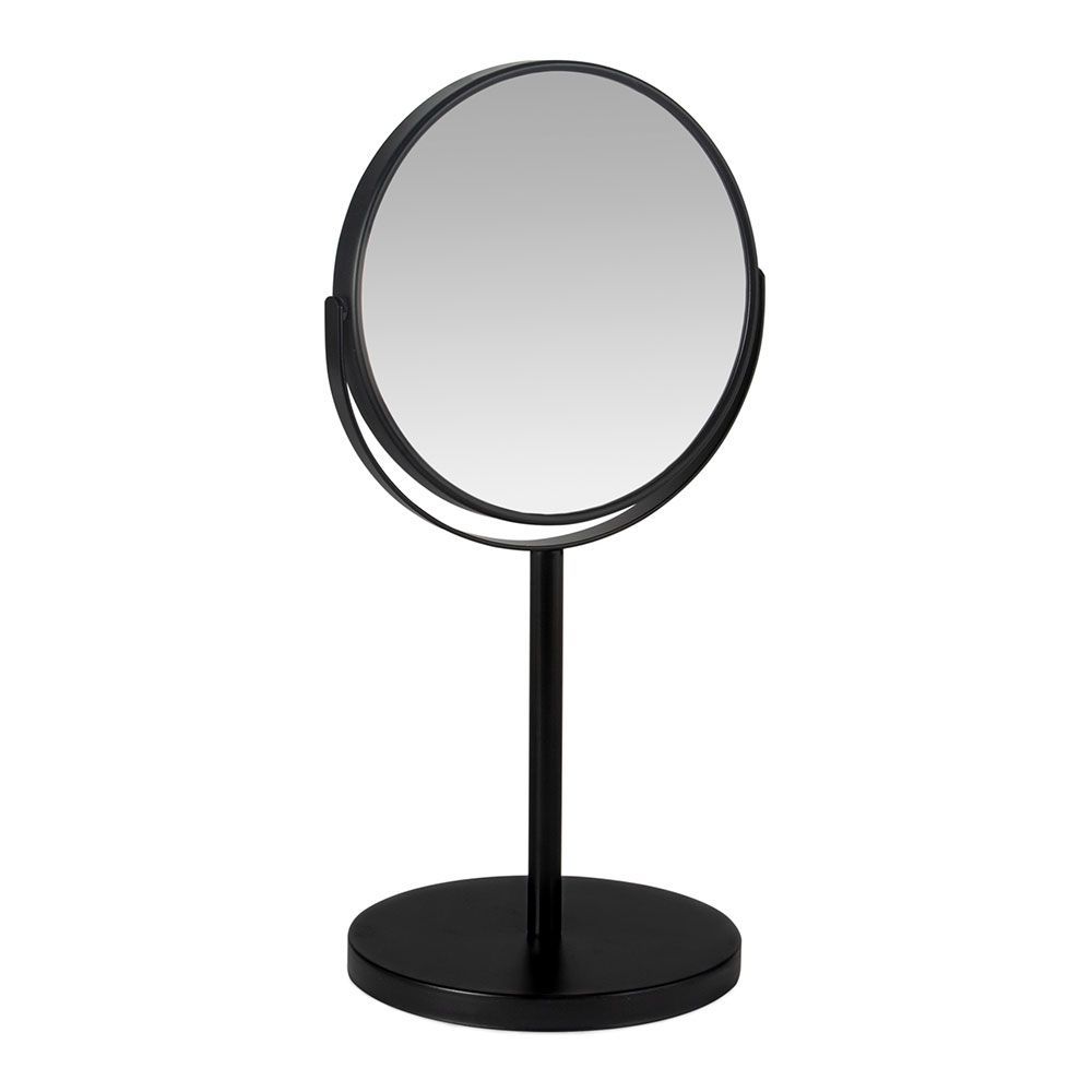 Espejo Pie Negro Mate X5Au Andrea House. Espejo Redondo 2 Caras Con Pie, En Metal Acabado Negro Mate. Caras De 1 Aumentos. Y 5 Aumentos. Dimensiones 18,5X15X34,5Cm