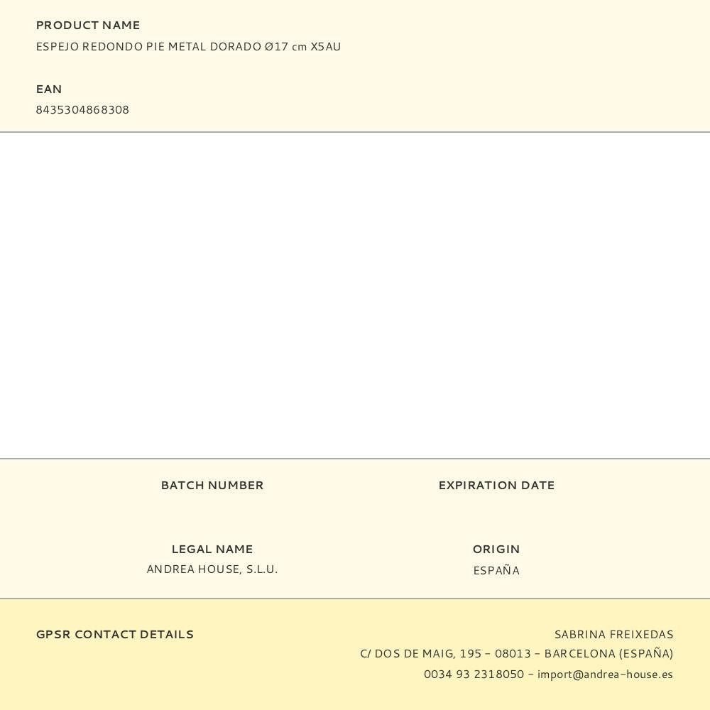 Espejo Redondo Pie Metal Dorado Ø17 Cm X5Au