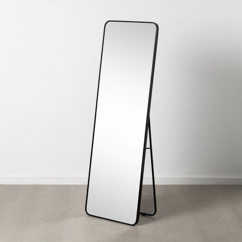 Espejo Vestidor Negro Aluminio-Cristal 56 X 3 X 165 Cm Marco: Aluminio Incorpora Sistema De Anchaje Y Anillas Para Colocación Vertical. Incluye Caballete Metálico.