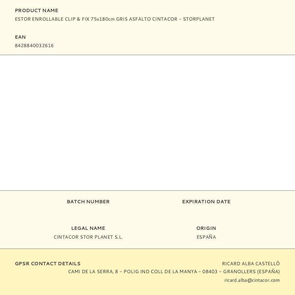 Estor Enrollable Clip & Fix Gris Asfalto 75 X 180 Cm