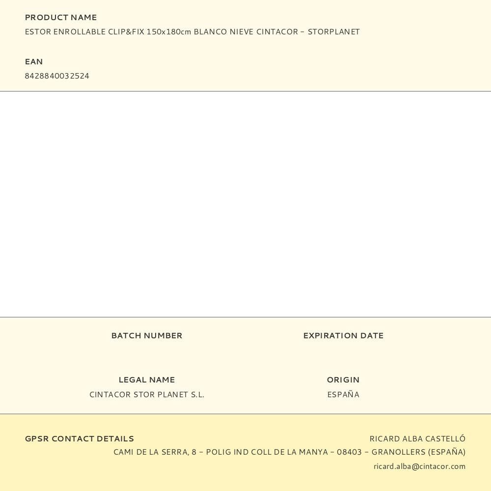 Estor Enrollable Clip & Fix Blanco Nieve 150 X 180 Cm