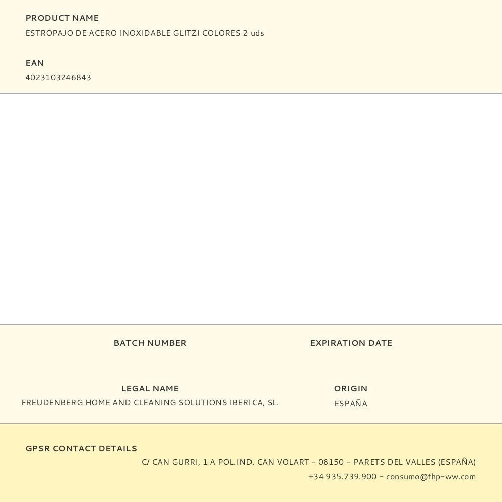 Estropajo De Acero Inoxidable Glitzi Colores 2 Uds. Estropajo Metálico En Formato Almohadilla, Más Manejable. No Se Deshilacha, Más Duradero. Fácil De Aclarar, Más Higiénico