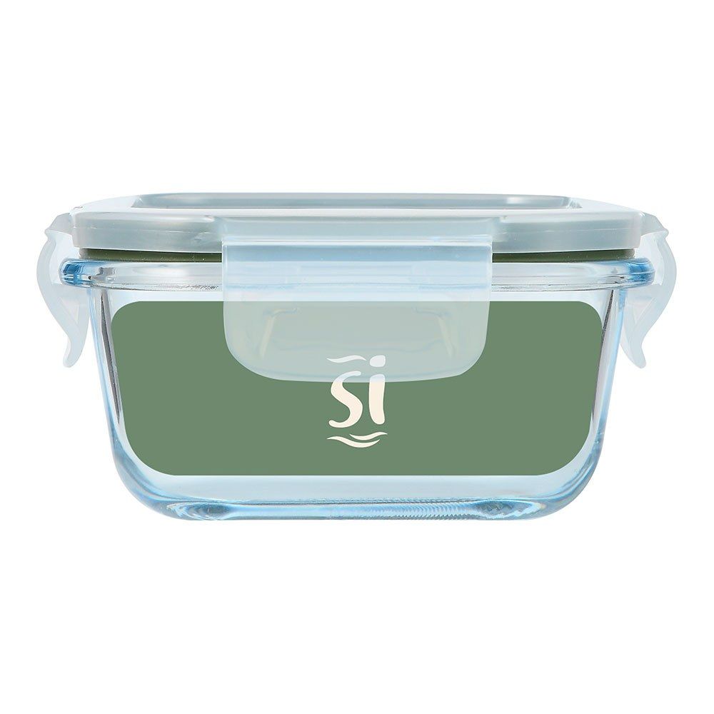 Fiambrera Hermética De Vidrio De Borosilicato Cuadrada, Serie Experto, Tapa De Pp Transparente Y Silicona De Color Verde Oliva (Pq-7764C), Con 4 Cierres Y Válvula De Descompresión, Apilable, Apta Para Congelador, Frigorífico Y Lavavajillas, Apta Sin La Tapa Para Microondas Y Horno, 520 Ml, 13,8 X 13,8 X 7 Cm