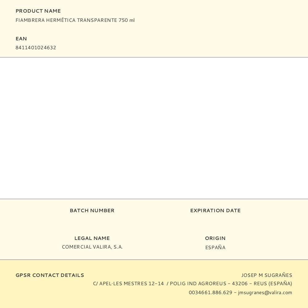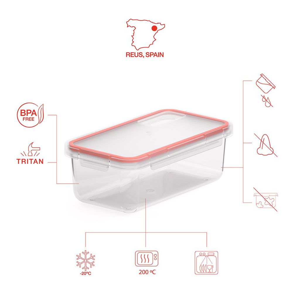 Fiambrera Hermética Transparente 750 Ml. Fabricado En Plástico Tritán Muy Resistente A Roturas, Libre De Bpa. 100% Hermético Gracias A Sus 4 Puntos De Anclaje Y Junta Estanca. No Se Mancha, No Coge Olores, No Se Deforma. Apto Para Microondas, Lavavajillas Y Congelador (-20°C Hasta 100°C). Tapa Translúcida Con Ventana Para Ver Claramente El Interior
