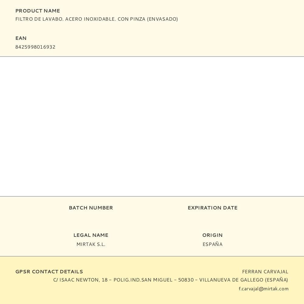 Filtro De Lavabo. Acero Inoxidable. Con Pinza (Envasado)