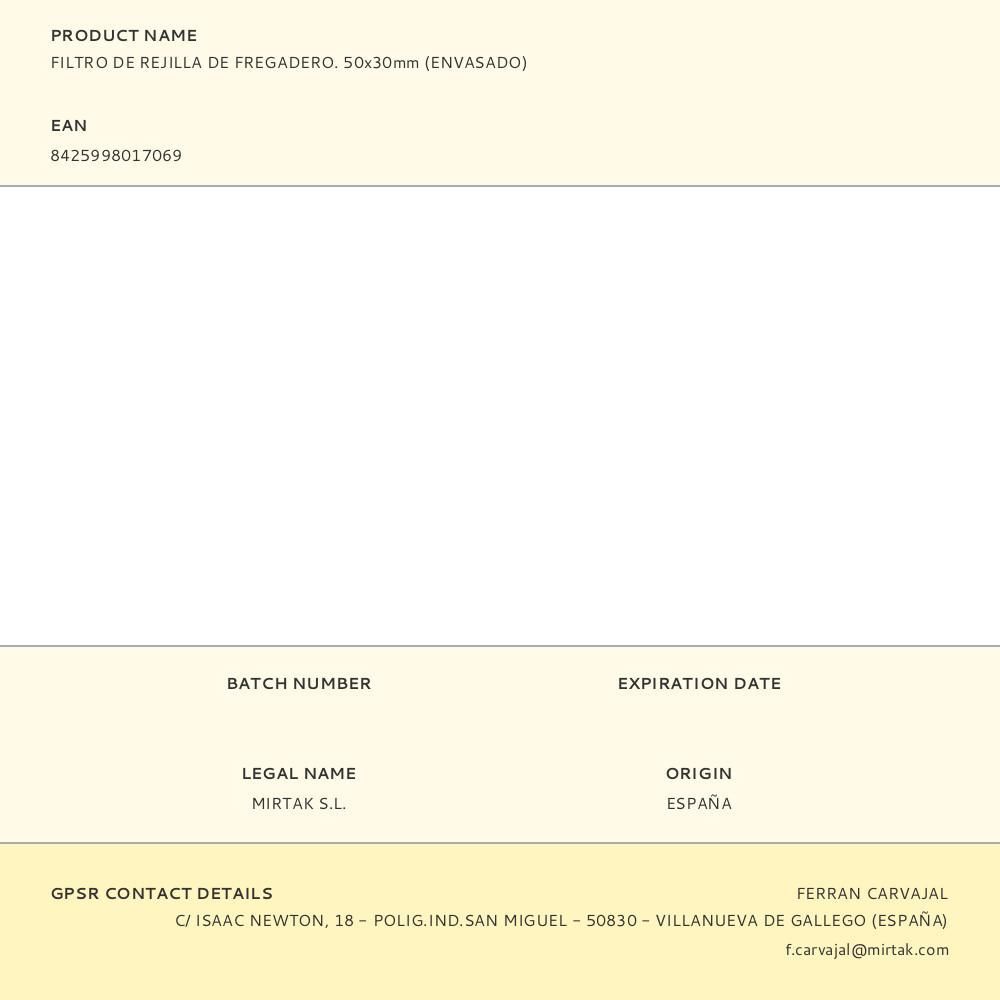 Filtro De Rejilla De Fregadero. 50X30Mm (Envasado)