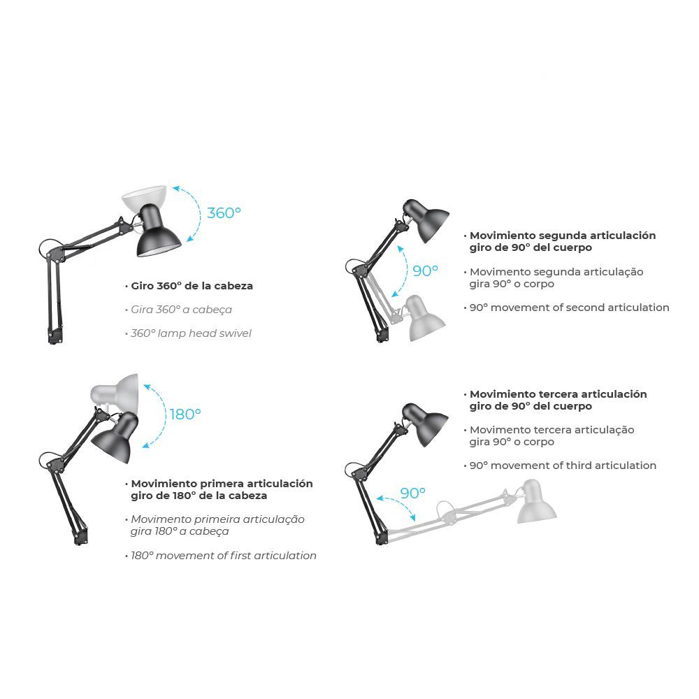 Flexo (Arquitecto) Modelo Melbourne Con Mordaza De Fijación E27 Color Negro. Potencia Maxima: 60W. Tension: 220-240V 50Hz Ce Edm