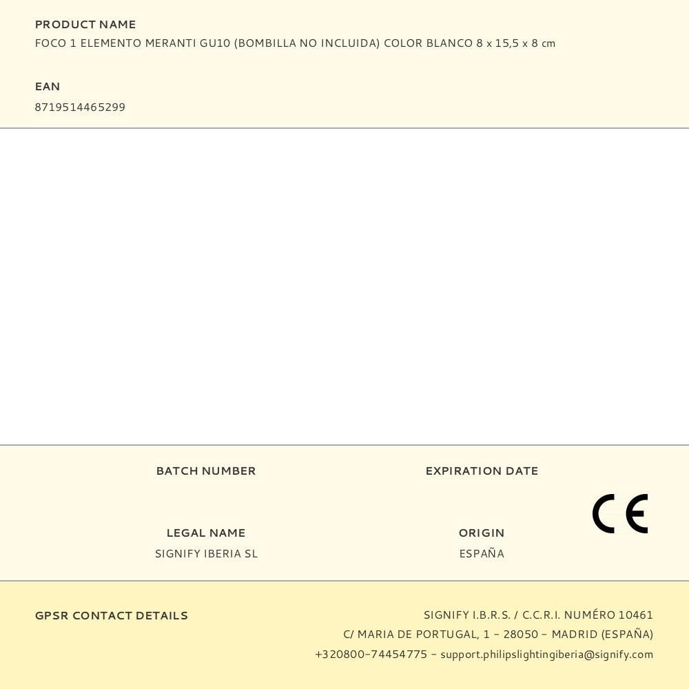 Foco 1 Elemento Meranti Gu10 (Bombilla No Incluida) Color Blanco 8 X 15,5 X 8 Cm