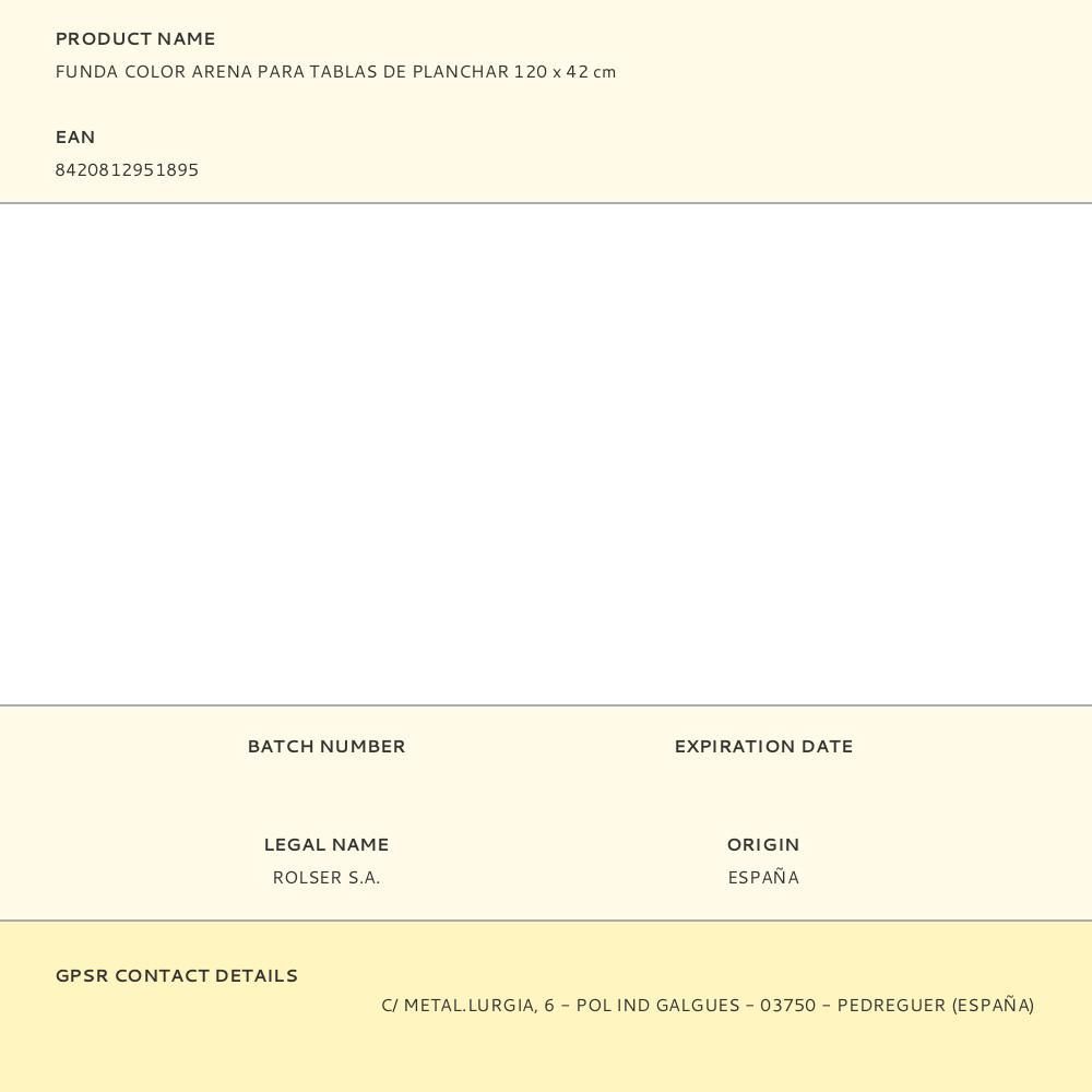 Funda Color Arena Para Tablas De Planchar 120 X 42 Cm