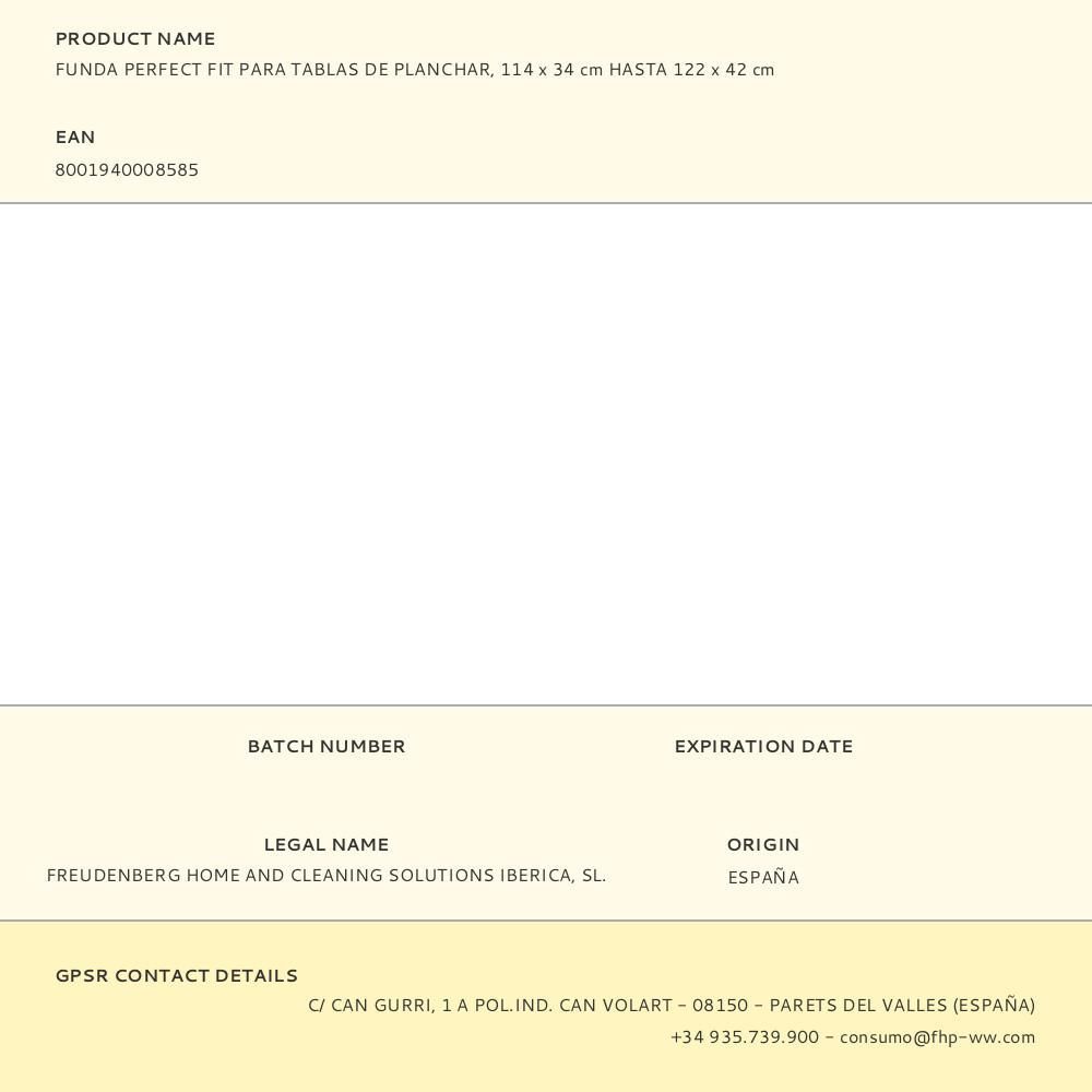 Funda Perfect Fit, Compuesta De 2 Capas, Una Exterior De Algodón Y Una De Espuma. Capa Exterior Elaborada Con 100% Algodón. El Relleno Está Compuesto De Espuma Para Facilitar El Planchado Y Aportar Comodidad. Certificado Oekotex. Con Fijación Elástica. Para Tablas Tamaño S / M, 114-122 Cm De Largo X 34-42 Cm De Ancho