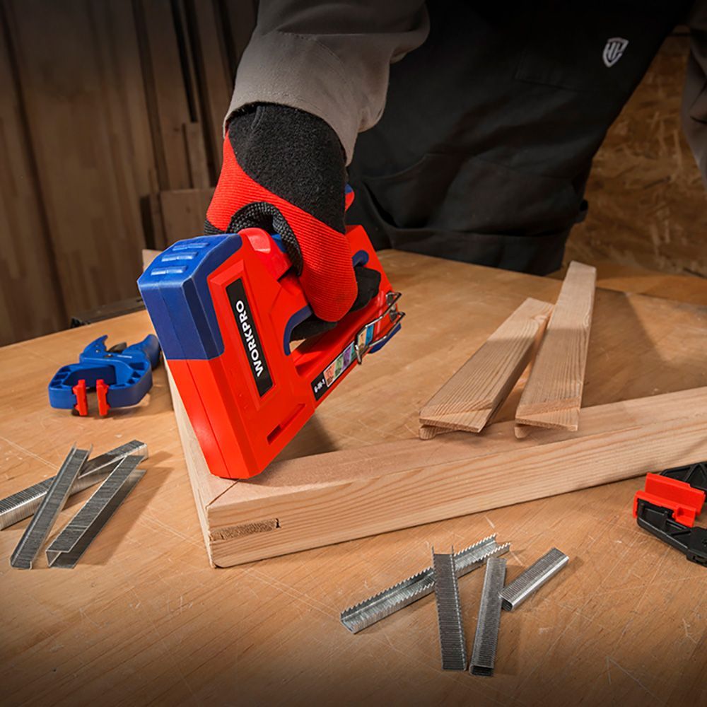 Grapadora 6 En 1 . Multifunción 6 En 1, Compatible Con Grapas Tipo T21, T50, T25, T20, 18Ga Y Pin. Puede Satisfacer La Mayoría De Sus Necesidades De Fijado Sin Reemplazar La Grapadora. Fácil Y Segura. Dos Potencias De Grapado . Diseño Ergonómico Revestido De Goma. Azul Y Rojo