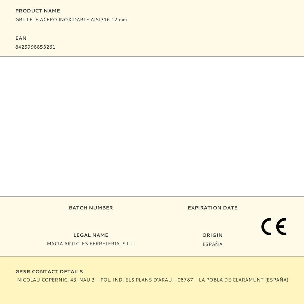 Grillete Acero Inoxidable Aisi316 12 Mm