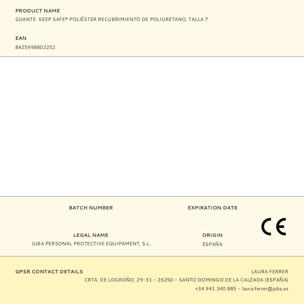 Guante Keep Safe, Poliéster T-07 Con Palma Pu Negro. Usos: Bricolaje, Trabajos En El Campo, Almacenamiento Y Reposición, Manipulación, Montaje Y Ensamblaje De Piezas En Entornos Secos, Ligeramente Húmedos O Engrasados.