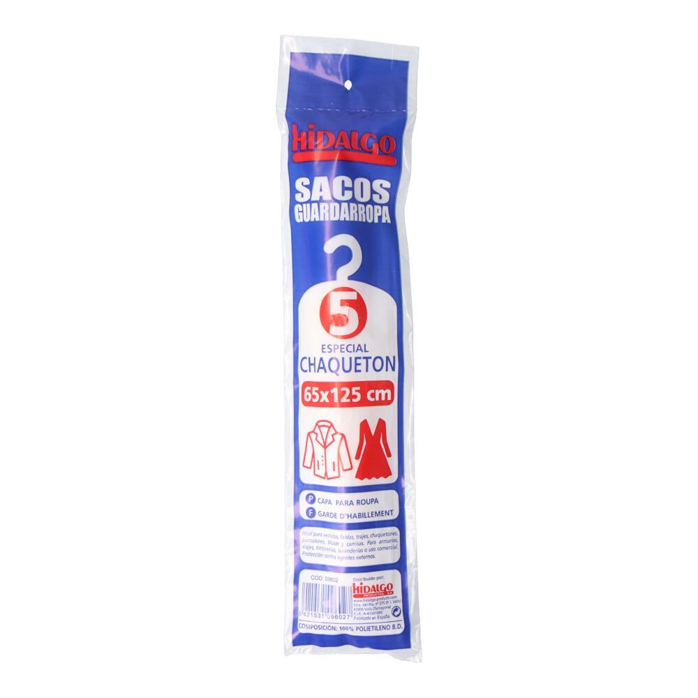 5 Sacos Guardarropa N°2 Chaquetón 65X125Cm Mauris. Protege La Ropa Del Polvo, Humedad Y Polillas. 100% Poliuretano.Producto Nacional.