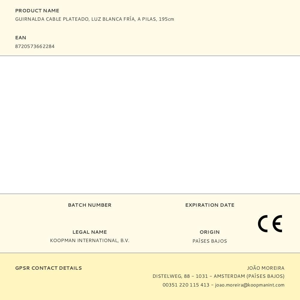 Guirnalda A Pilas, Función Fija, 40 Leds, Cable Alambre Plateado, Luz Blanca Fría, Pilas 3 X Aa (No Incluidas), Ip20, Distancia Entre Bombillas 5 Cm, Cable Alimentación 10 Cm. Distancia Entre La Primera Bombilla Y La Última: 195 Cm. Largo Total: 2,05 M
