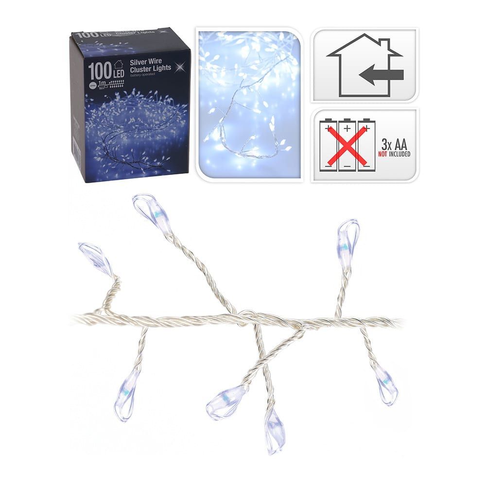 Guirnalda A Pilas, Función Fija, Uso Interior, Tipo Espino, Blanco Frío, 100 Leds, 1,50 M