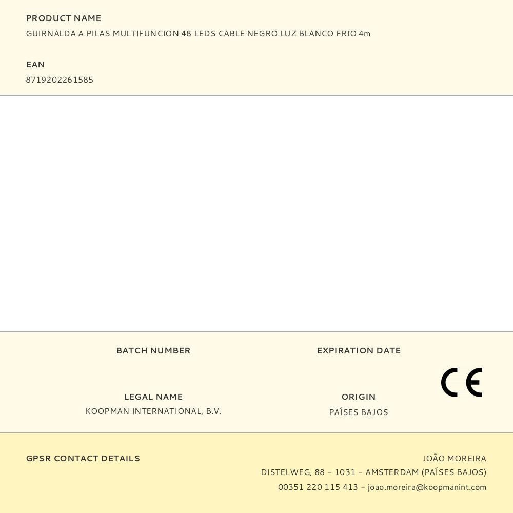 Guirnalda A Pilas Multifuncion 48 Leds Cable Negro Luz Blanco Frio Pilas 3Xaa No Incluidas Ip44 7,5Cm Entre Bombillas Programador 8 Funciones Con Memoria + Temporizador 6H Encendido 18H Apagado. Cable Alimentación 50Cm. Distancia Entre La Primera Bombilla Y La Ultima 3,50M. Largo Total: 4M