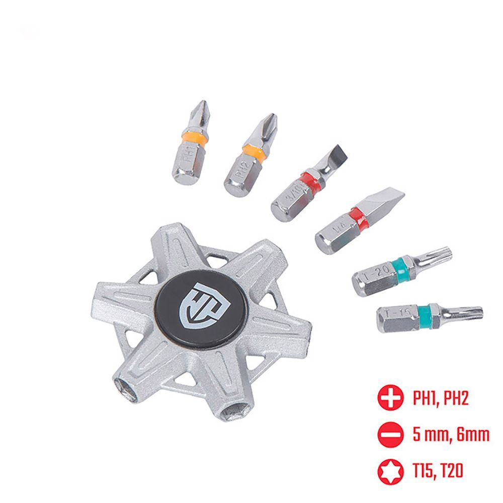 Herramienta 6 En 1 Cuerpo De Zinc, Puntas Acero Cromo Vanadio, Medidas: 5, 6, Ph1, Ph2, T15, T20.