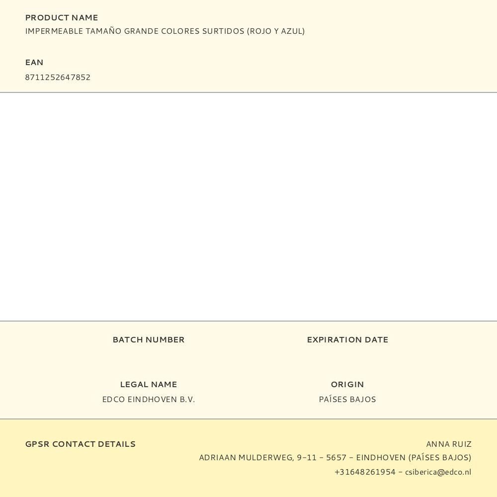 Impermeable Tamaño Grande Colores Surtidos (Rojo Y Azul)