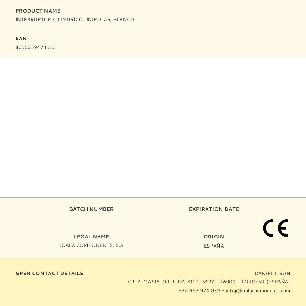Interruptor Cilíndrico Unipolar, Blanco
