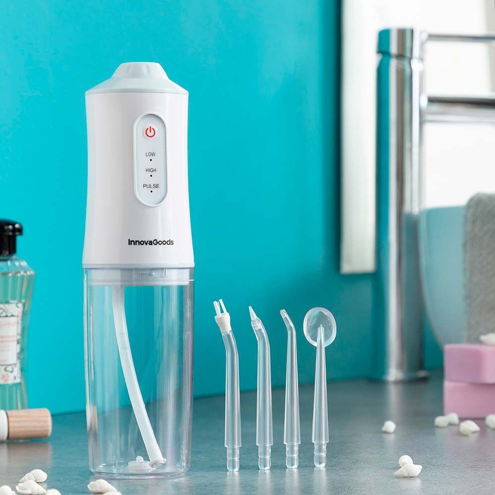 Irrigador Dental Recargable Portátil, Denter, 4 W, Presión 30 - 110 Psi, Protección Ipx6, Batería Li-Ion 2000 Mah, Carga Completa 3 H Aprox., Capacidad 220 Ml, Proporciona Una Refrescante Sensación De Limpieza Bucal. Dispone De 3 Modos De Uso E Incluye 4 Cabezales Y Cable De Carga, 6 X 6 X 21 Cm