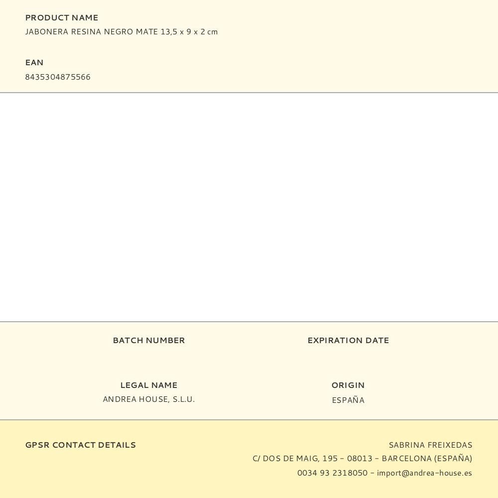 Jabonera Resina Negro Mate 13,5 X 9 X 2 Cm