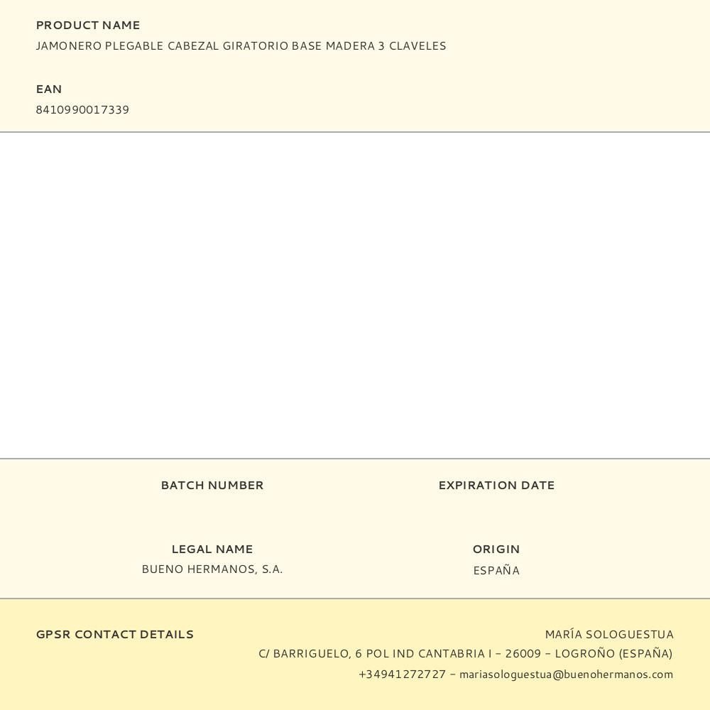 Jamonero Plegable Cabezal Giratorio Base Madera 47 X 18,5 X 37 Cm