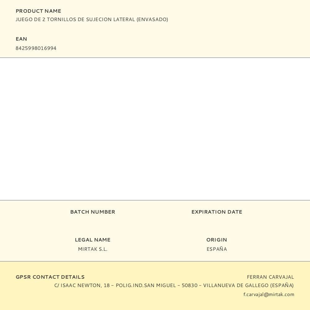 Juego De 2 Tornillos De Sujecion Lateral (Envasado)
