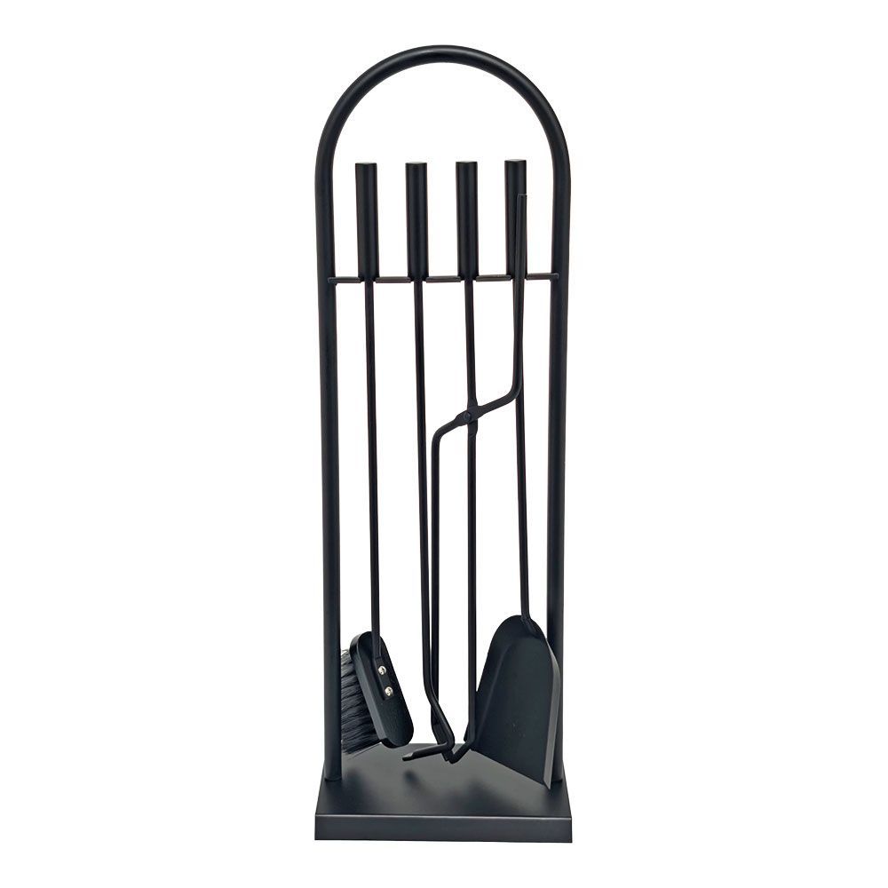 Juego De Chimenea De 4 Piezas Con Soporte, Fabricado En Metal, Recubrimiento En Polvo Negro, Incluye Atizador, Pinza, Pala Recogedora Y Cepillo, 23 X 68 Cm