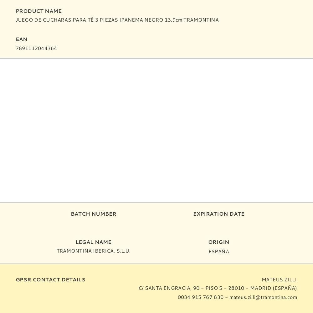 Cucharas Para Té Ipanema Negro 13,9 Cm, En Acero Inoxidable, Mangos De Polipropileno, Incluye 3 Piezas, Color Negro