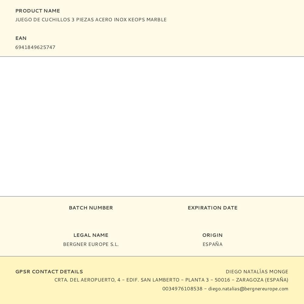Juego De Cuchillos 3 Piezas Acero Inox Keops Marble