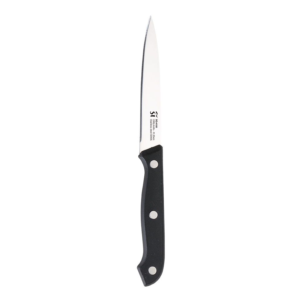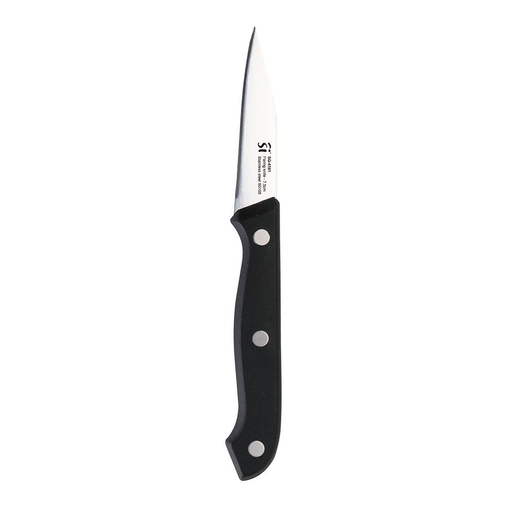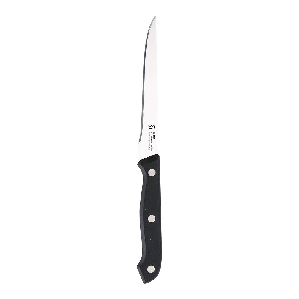 Juego De Cuchillos 6 Piezas. Acero Inoxidable. Cuchillo Deshuesador 12,5 Cm. Cuchillo De Carne 11,25 Cm. Cuchillo Multiusos 10,6 Cm. Cuchillo De Pelar 7,5 Cm. Tijeras Mango Del Cuchillo Negro. Bloque De Cuchillos De Plástico Negro