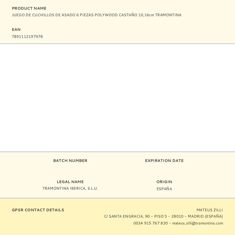 Cuchillos De Asado Polywood Castaño 10,16 Cm 6 Uds