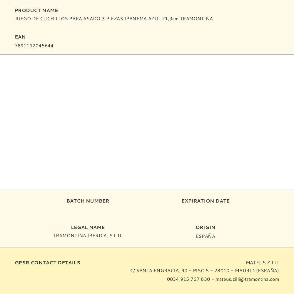 Cuchillos De Asado Ipanema Azul 21,3 Cm 3 Uds. En Acero Inoxidable Y Mangos De Polipropileno