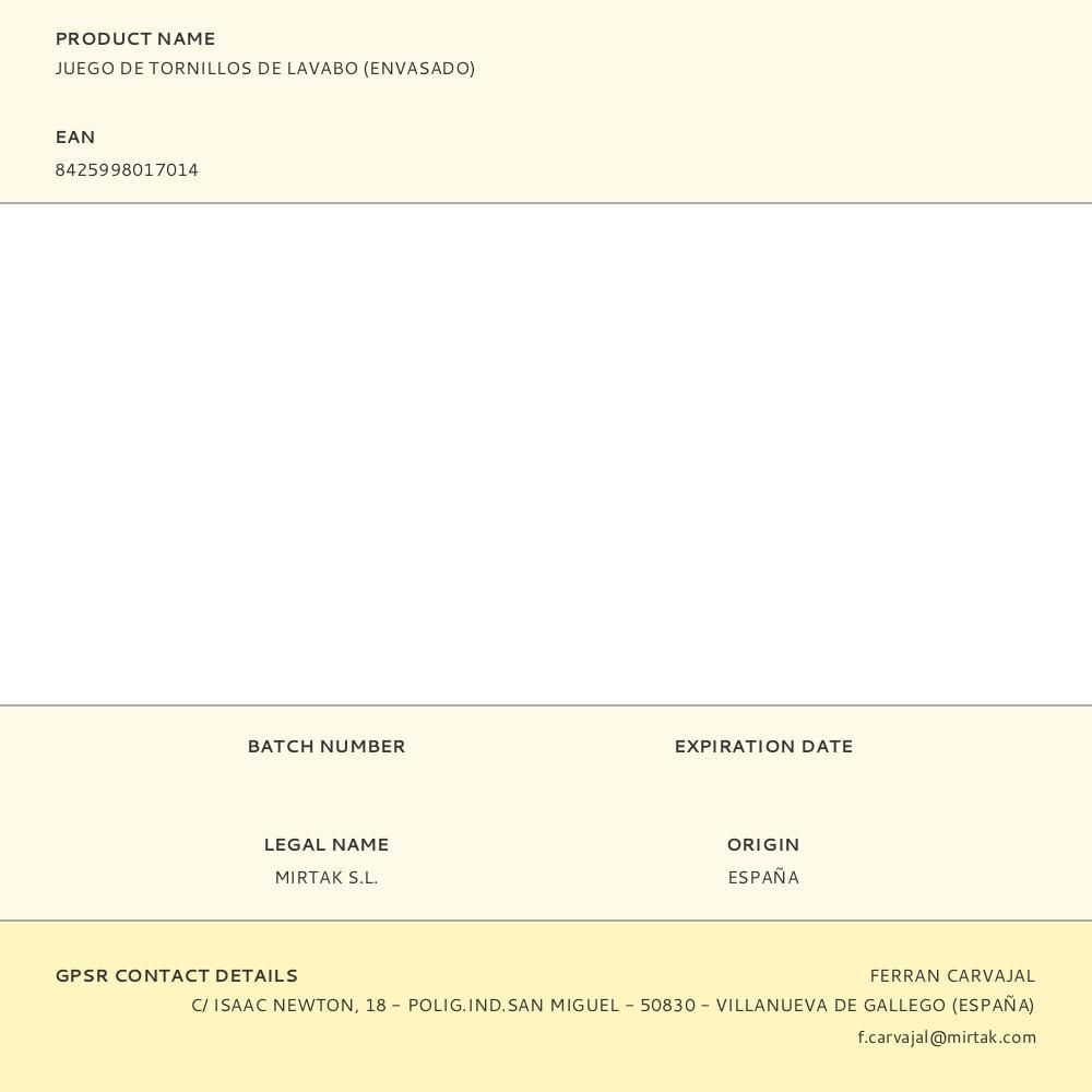 Juego De Tornillos De Lavabo 10X100 Mm (Envasado)