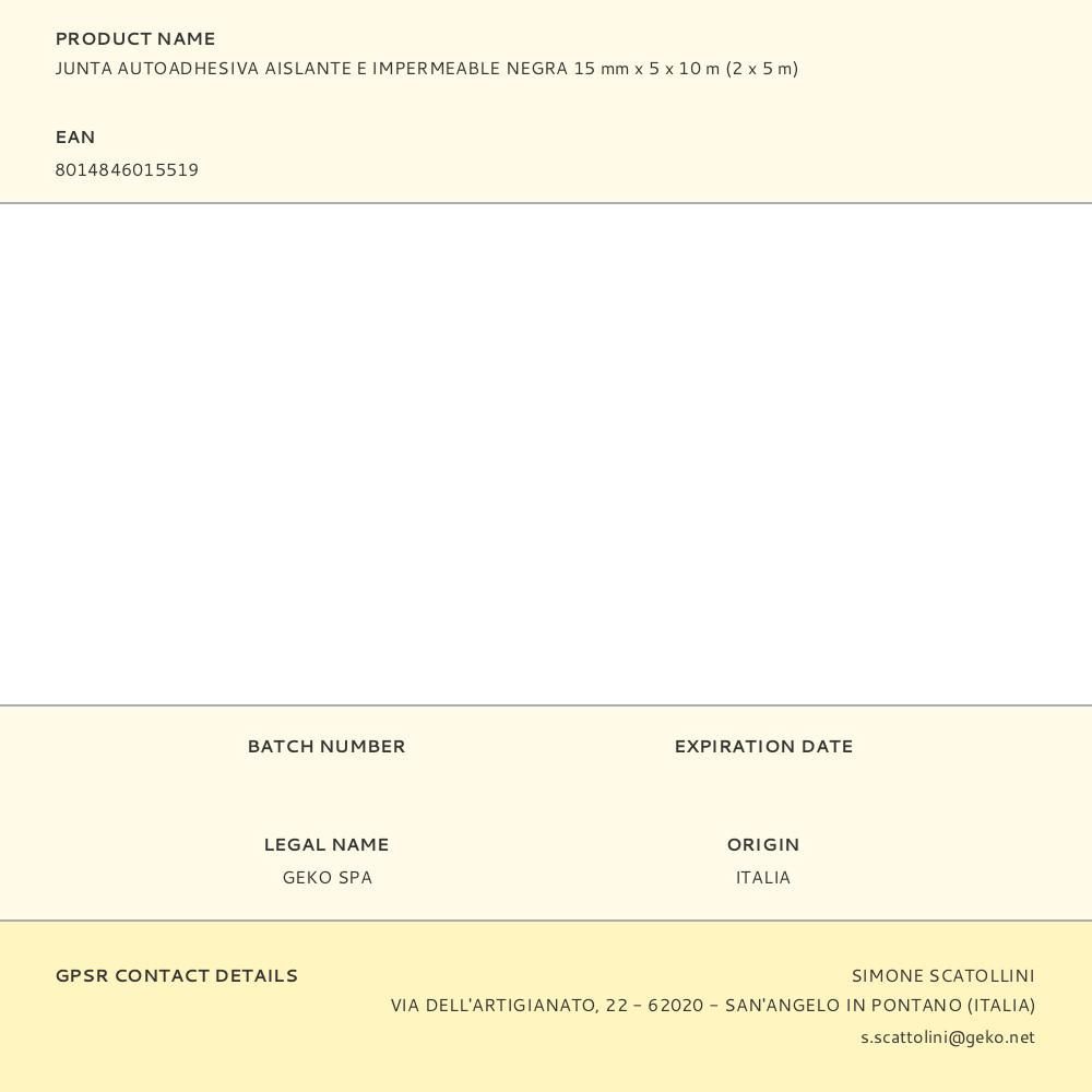 Junta Autoadhesiva Aislante E Impermeable Negra 15 Mm X 5 X 10 M (2 X 5 M)