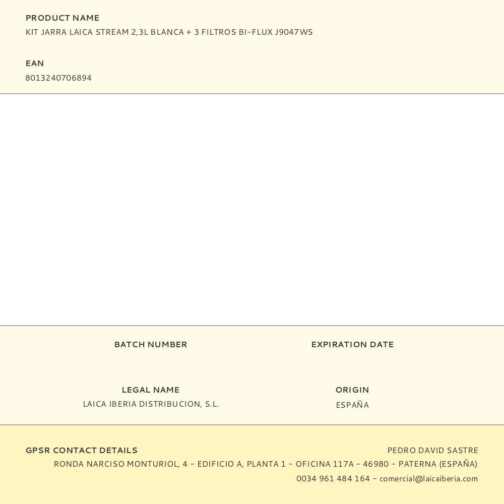 Kit Jarra Laica Stream 2,3L Blanca + 3 Filtros Bi-Flux 26,5X9,3X27,2Cm 0,6Kg (Los Filtros Laica Son Compatibles Con Las Primeras Marcas) Made In Italy