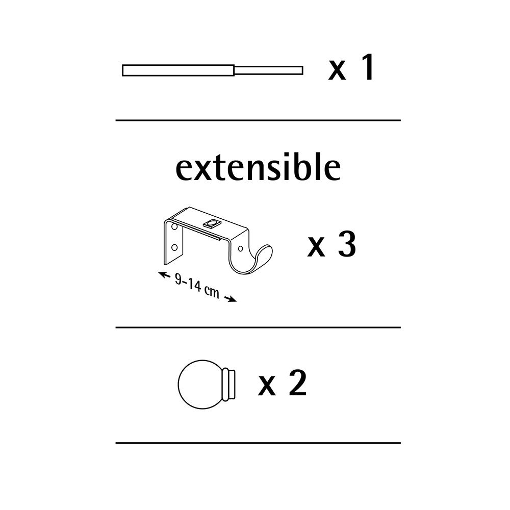 Kit Barra Cortina Báculo Negro Extensible De 160 - 300 Cm