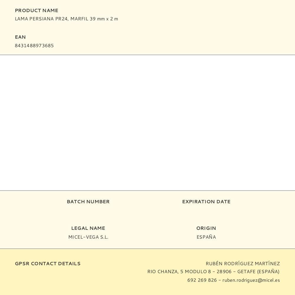 Lama Persiana Pr24, Marfil 39 Mm X 2 M