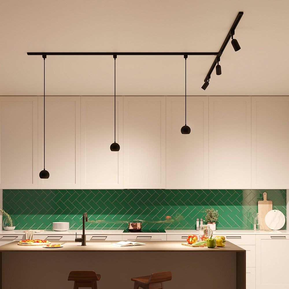 Lámpara Easylink Colby De Techo, Diseño Colgante 7 W, Negra. Casquillo Gu10 (Bombilla No Incluida), Cable De Tierra Integrado, Sistema De Carril En H De 3 Cables, Compatible Con Bombillas Led Inteligentes Y Clásicas (Opciones De Regulación Y Temperatura De Color Según Bombilla, Disponibles Por Separado). Totalmente Compatible Con El Resto De Componentes Easylink. Ø100 X 1360 Mm