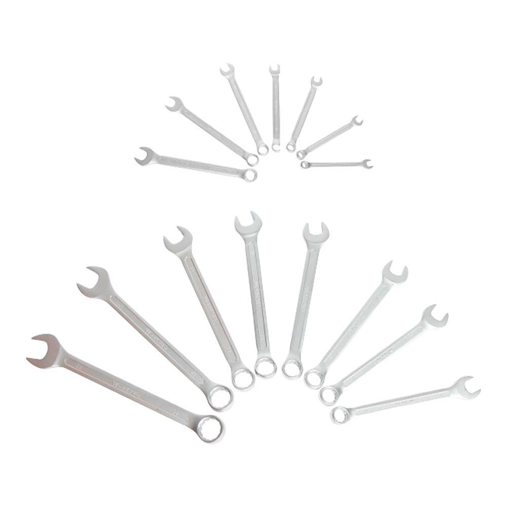 Llaves Combinadas Al Cromo Vanadio, Fija Estrella, Contiene 15 Piezas: 7, 8, 9, 10, 11, 12, 13, 14, 15, 16, 17, 18, 19, 21 Y 22 Mm