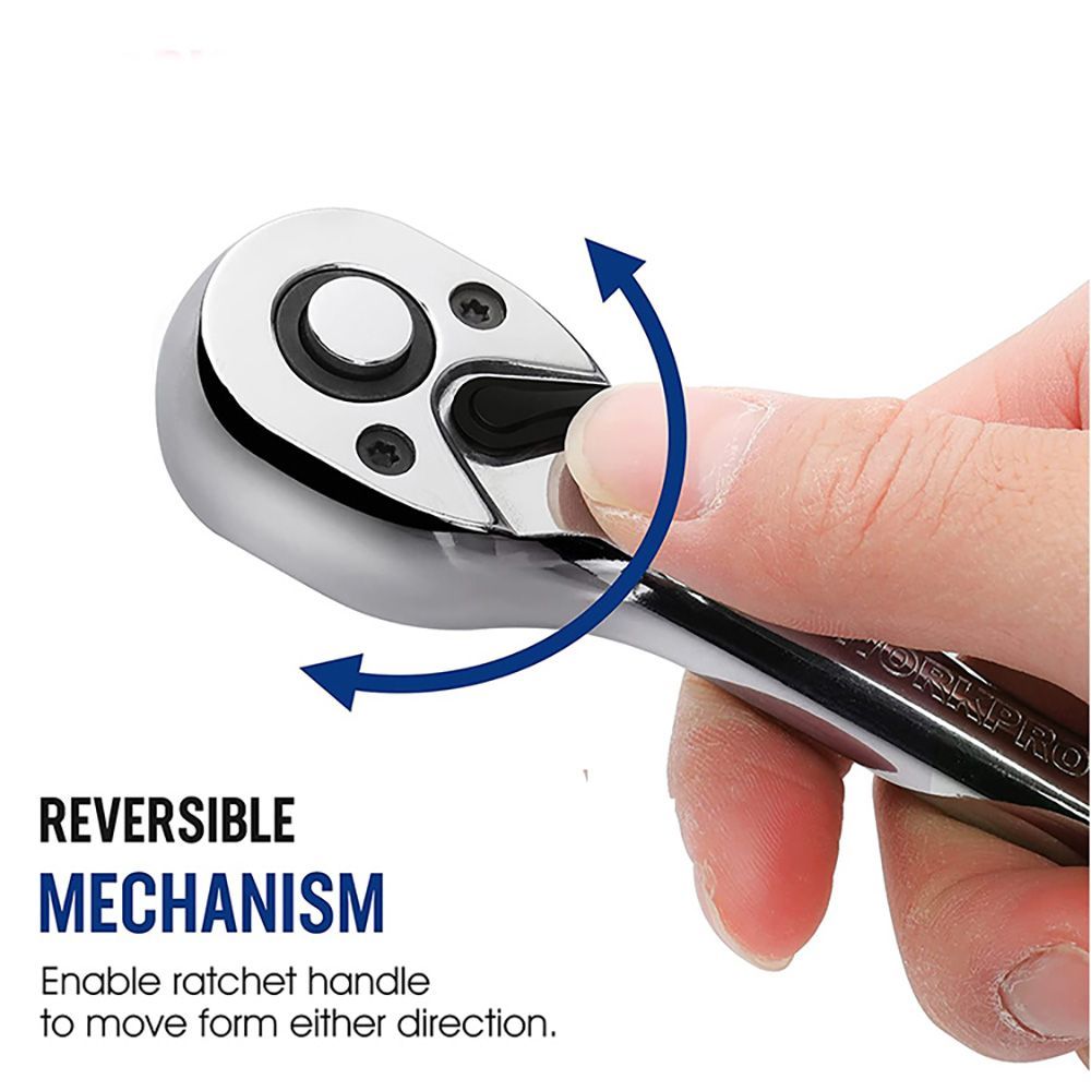 Llave De Carraca ½ Pulg , 72 Dientes, Suelta Rápida, Cromada Brillante, Mango Recubierto De Goma Ergonómico, Azul Y Rojo