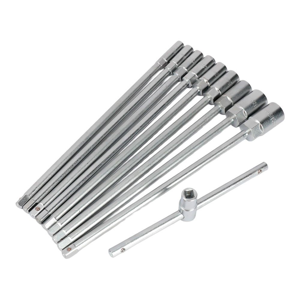 Juego Llaves De Vasos De 10 Piezas Con 1 Barra En T Deslizante De 200 Mm Y 9 Barras De Extensión Con Vasos Ø8, Ø9, Ø10, Ø11, Ø12, Ø13, Ø14, Ø17 Y Ø19 Mm