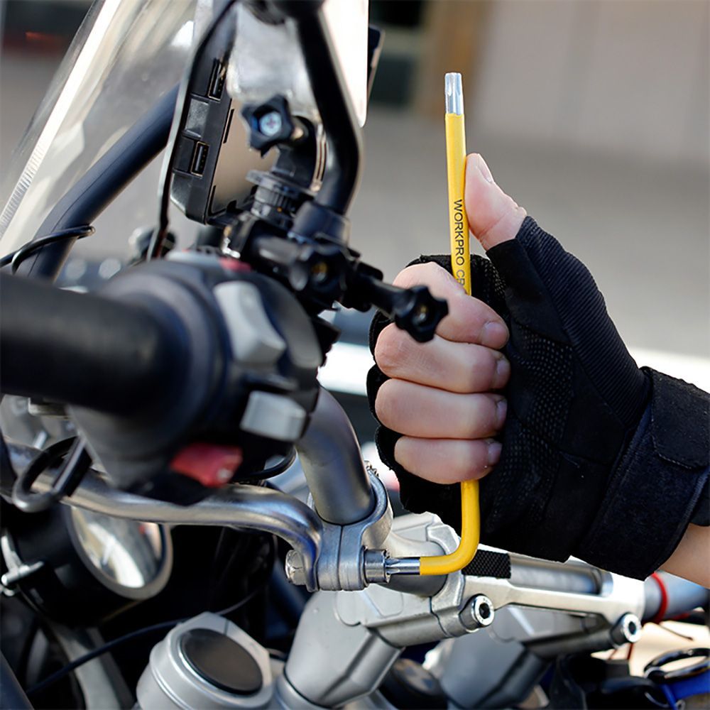 Juego De 9 Llaves Torx De Seguridad De Brazo Largo. Acero Al Cromo-Vanadio, Templado. 9 Llaves Torx: T10, T15, T20, T25, T27, T30, T40, T45 Y T50. Amarillo