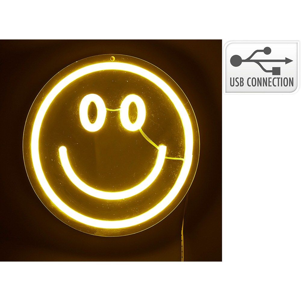 Luz Led Neón Decorativa Forma De Carita Sonriente, Lámina De Pvc Espumado, Espejo Ps, Tira Fv, Cobre, Led De Color. Usb Con Interruptor De Encendido/Apagado, Cable Blanco De 2 M, Dimensiones: 20 X 20 Cm