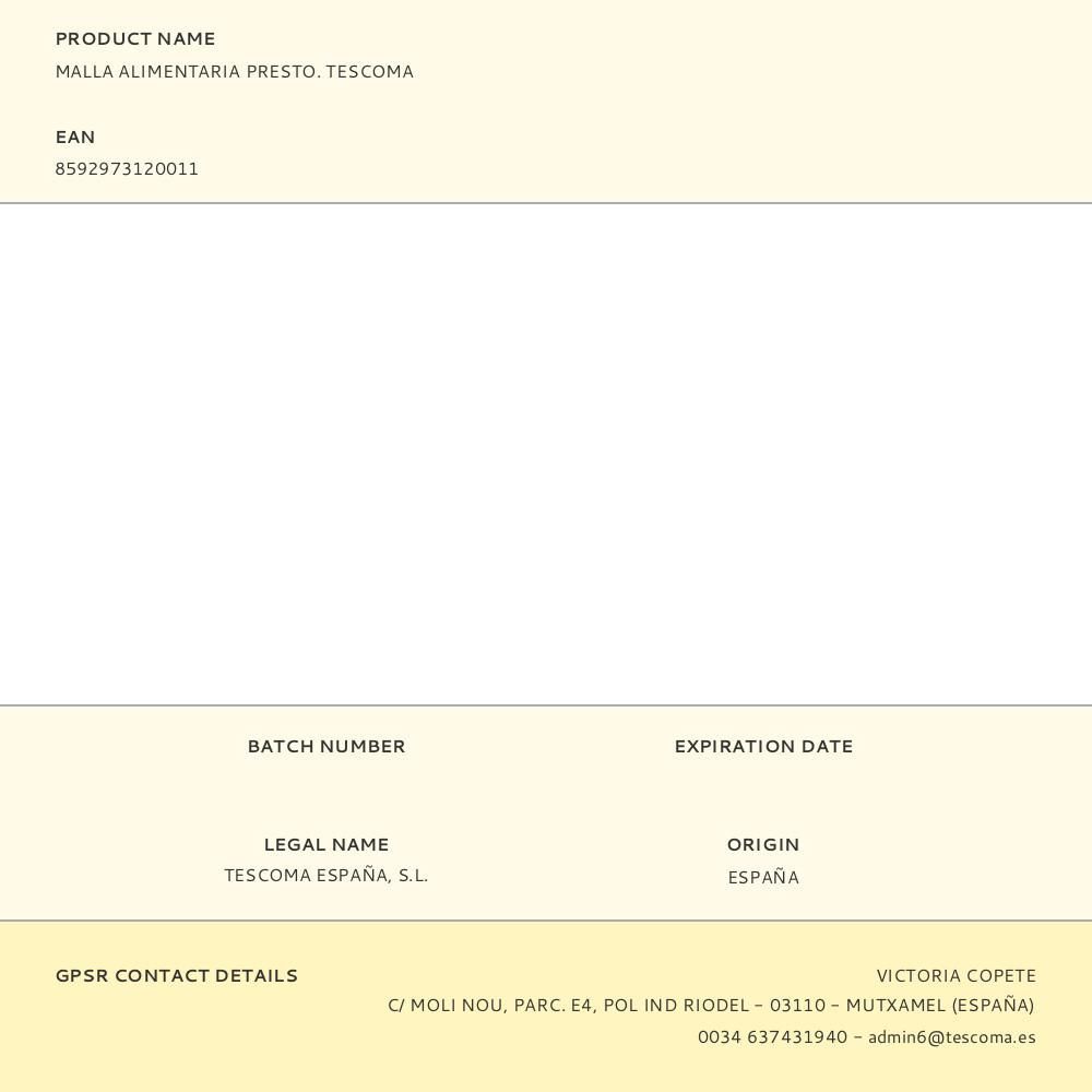 Malla Alimentaria Presto. Excelente Para Preparar Fácil Y Rápidamente Rollos Compactos De Carne, Carne Ahumada, Etc. Apta Para Cocinar, Hornear Y Ahumar Alimentos, Resistente Hasta 220 °C. Adecuada Como Malla De Repuesto Para El Juego De Malla Alimentaria Con Collarín De Llenado Presto