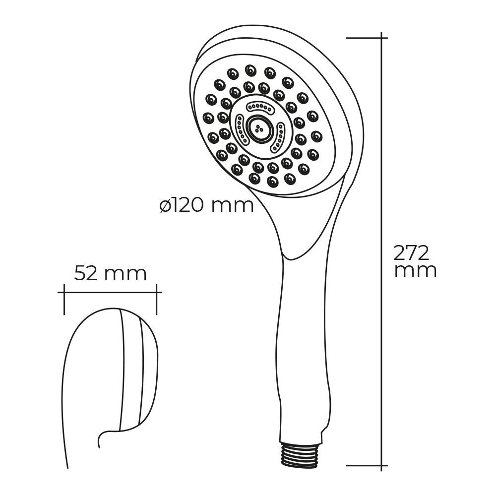 Mango De Ducha Anticalcareo. Moderno. 6 Funciones. Dimensiones: Ø12X5,2X27,2Cm. Color Cromo. Ergonomico. Material: Abs. Edm