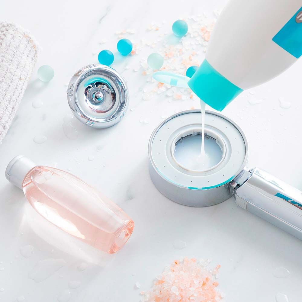 Mango De Ducha Doble Con Dispensador 3 En 1 Xawara. Dispone De Dos Modos De Salida De Agua: Efecto Lluvia Y Pulverizador. Con Depósito Para Gel, Aceites Esenciales, Sales De Baño, Etc